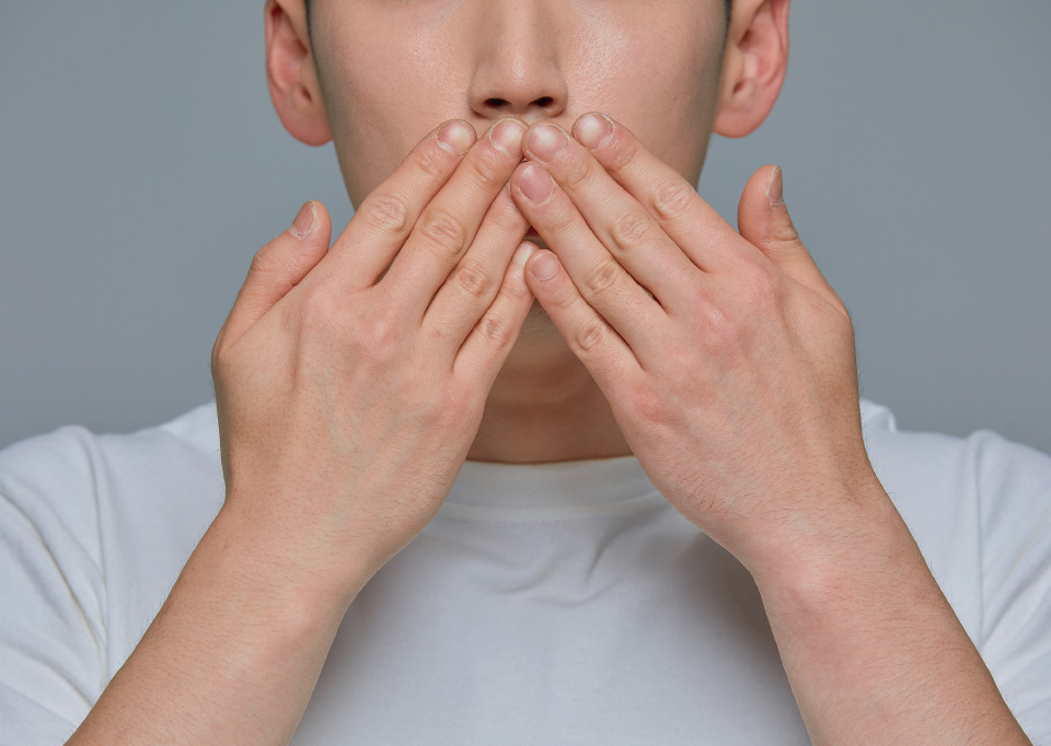 - 3분 정도 입을 다물고 있어 보세요. 그 후 두 손바닥을 모으거나 종이컵을 이용해 숨을 내쉬어 모인 냄새를 맡아봅니다.